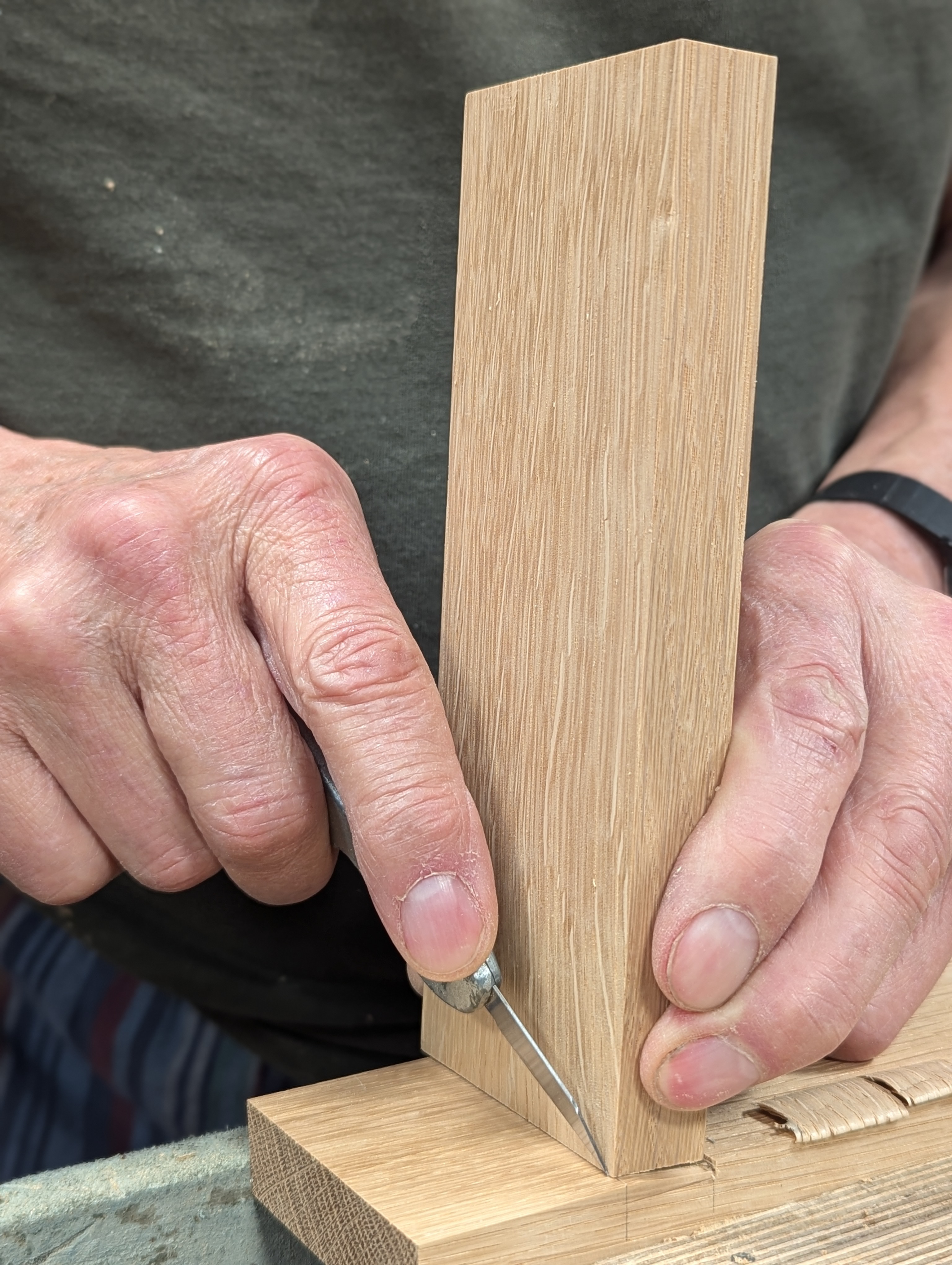 Cut down the dovetail angles to the depth line.