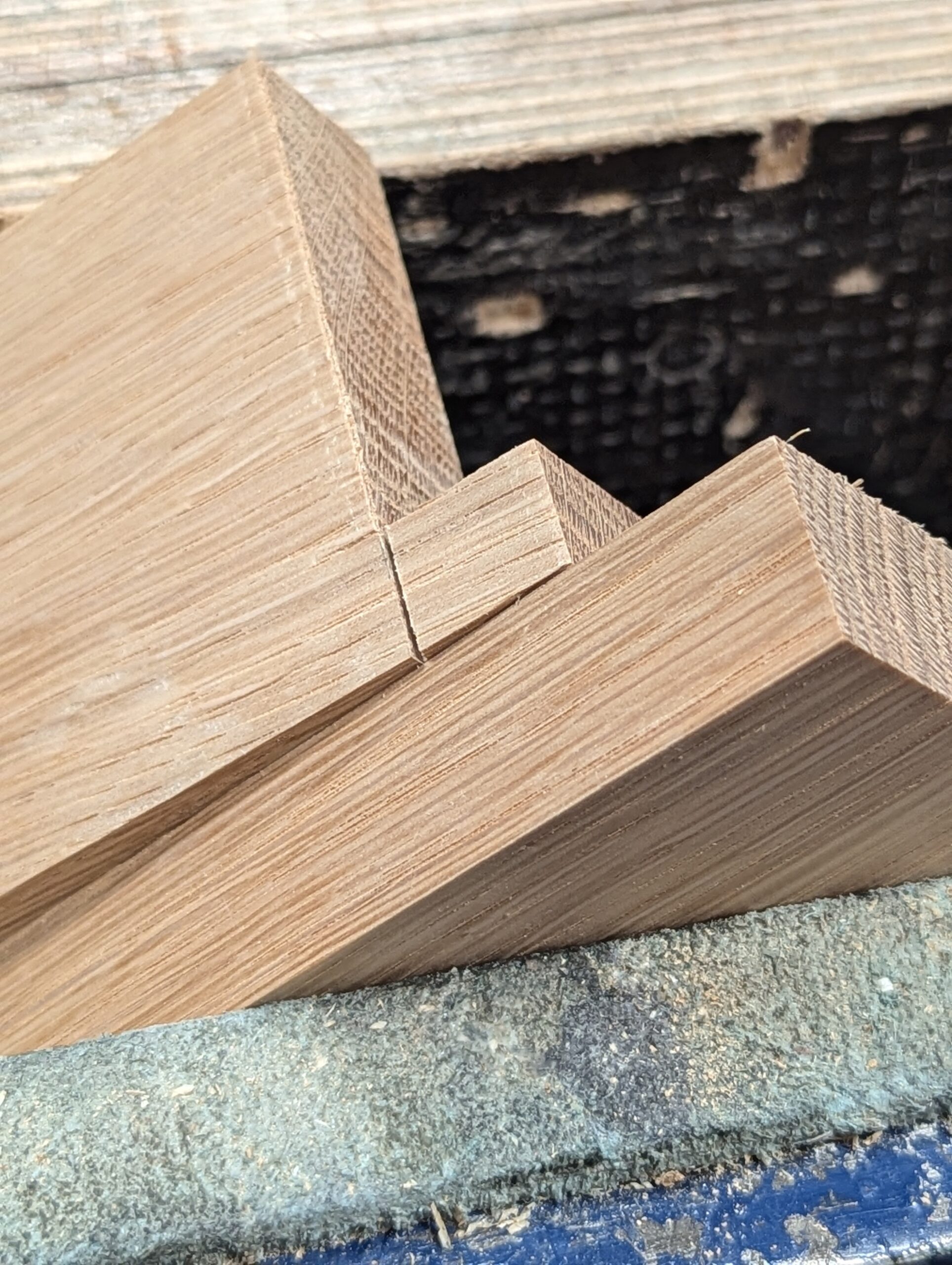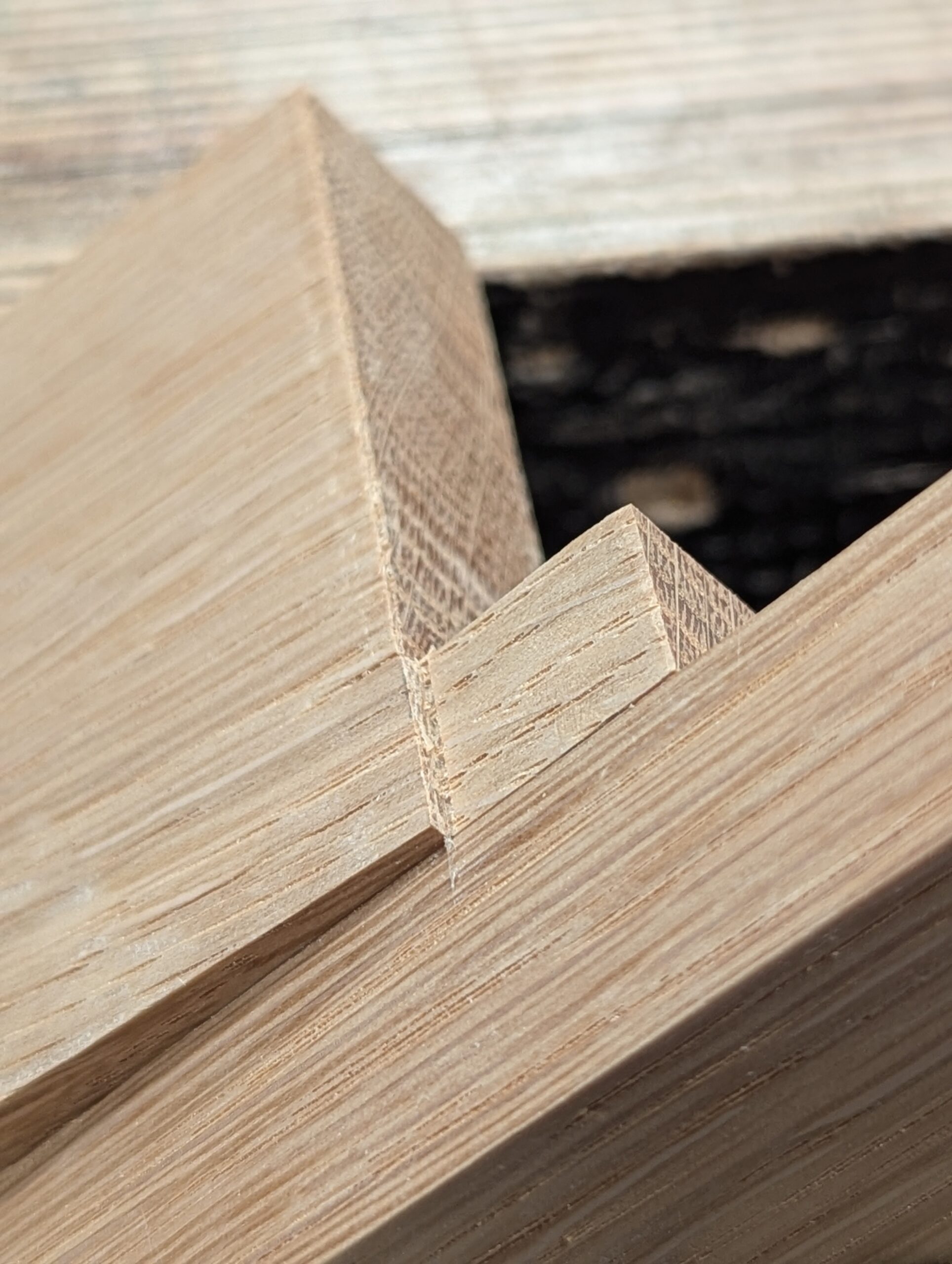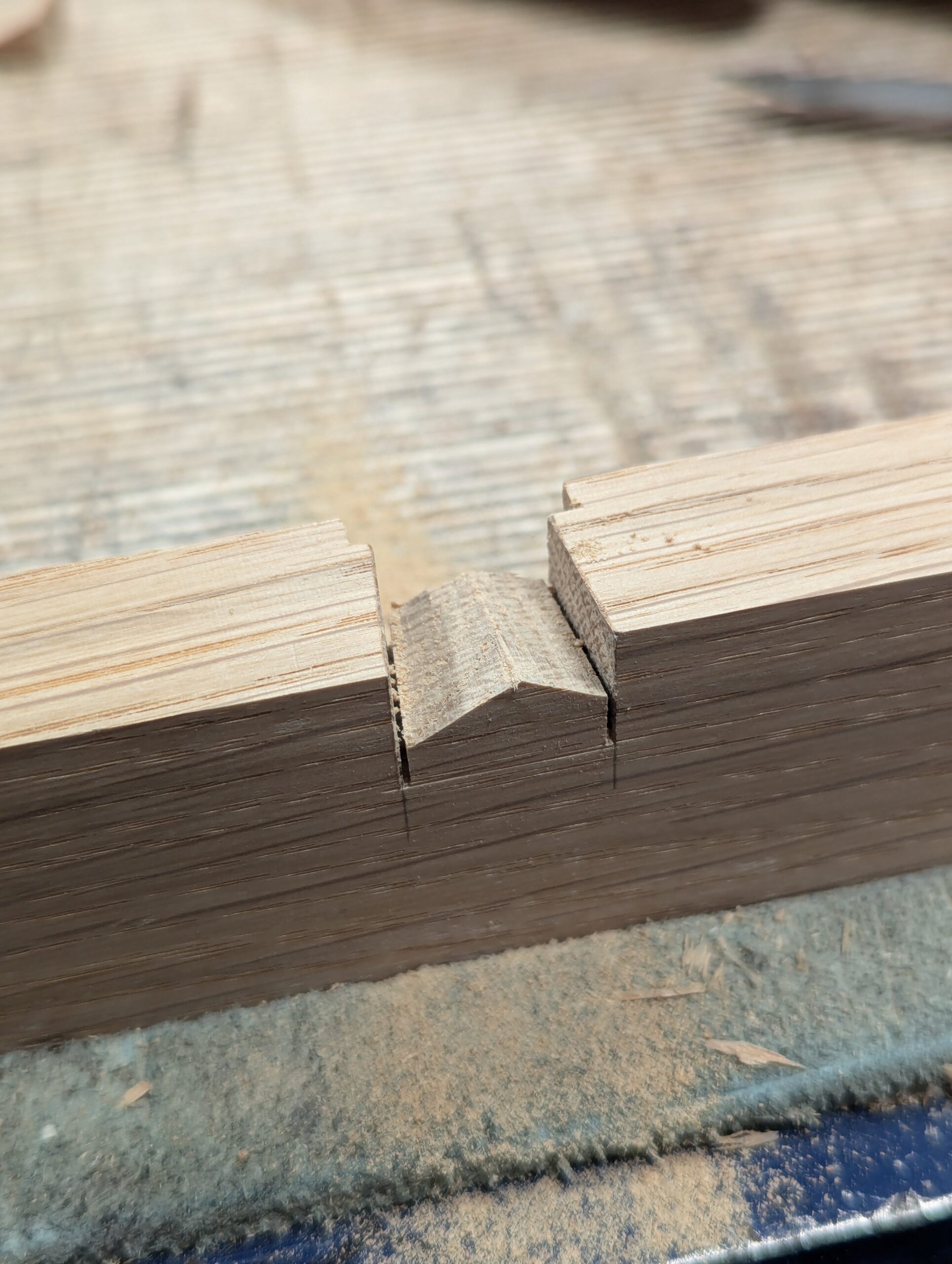 And here you see both angles cut to form the dovetail.