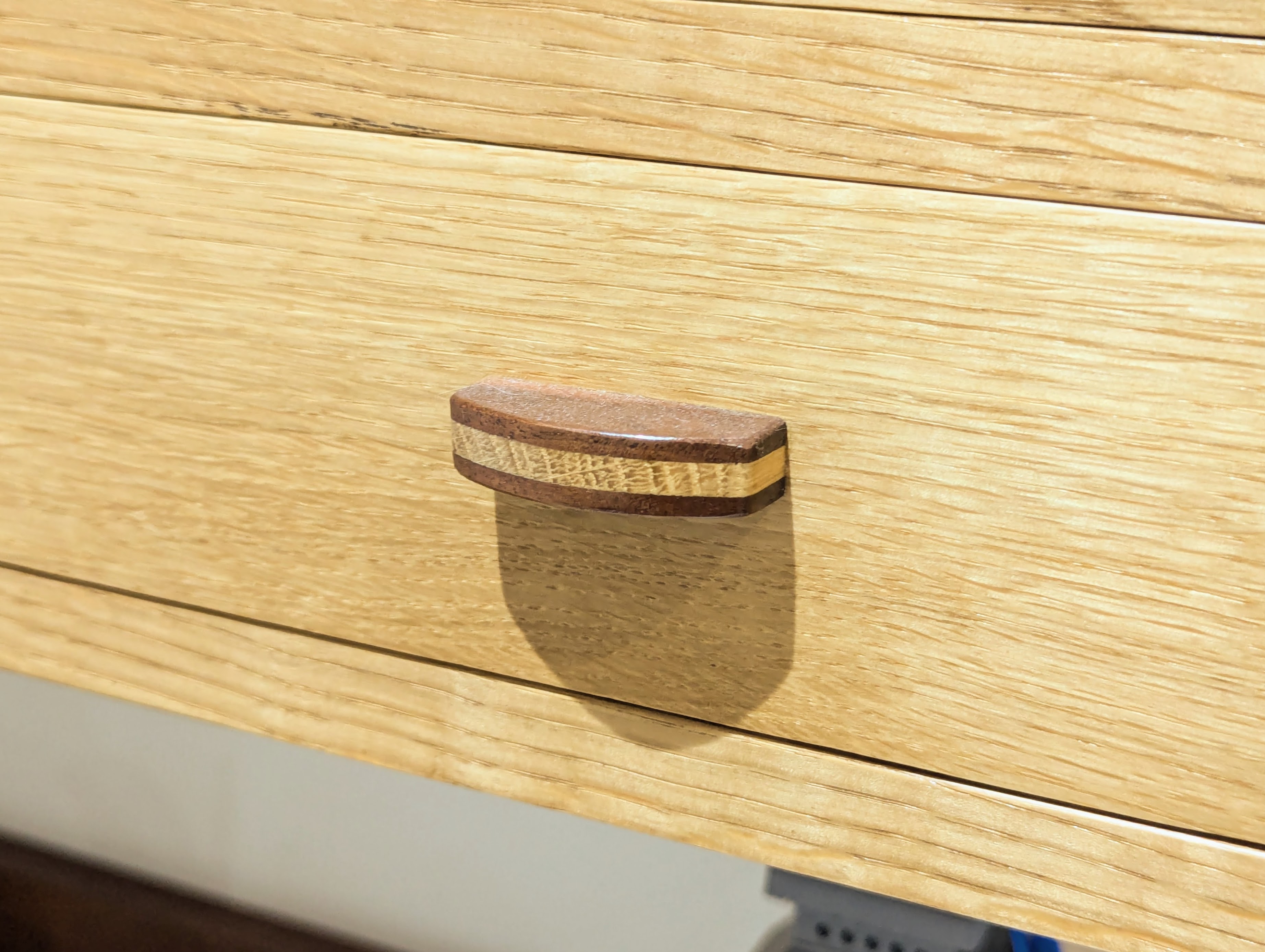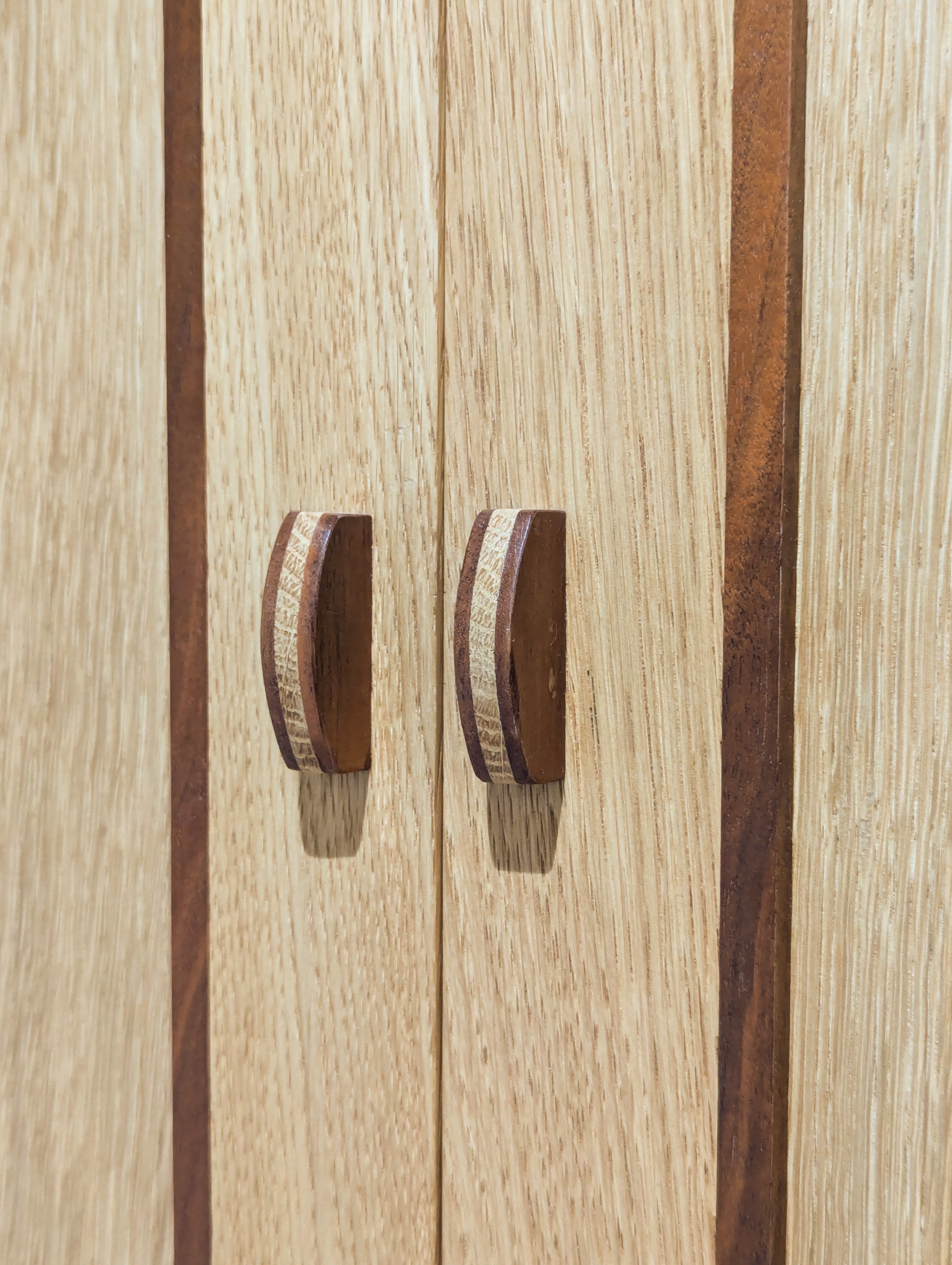 These handles came from small sections and scraps of oak, and the wardrobe below is where they ended up. They only take a few minutes to make, even using only hand tools. That's what I totally love about hand making. Your energy, your direction, and your exercising all of your rights as a freelancer.