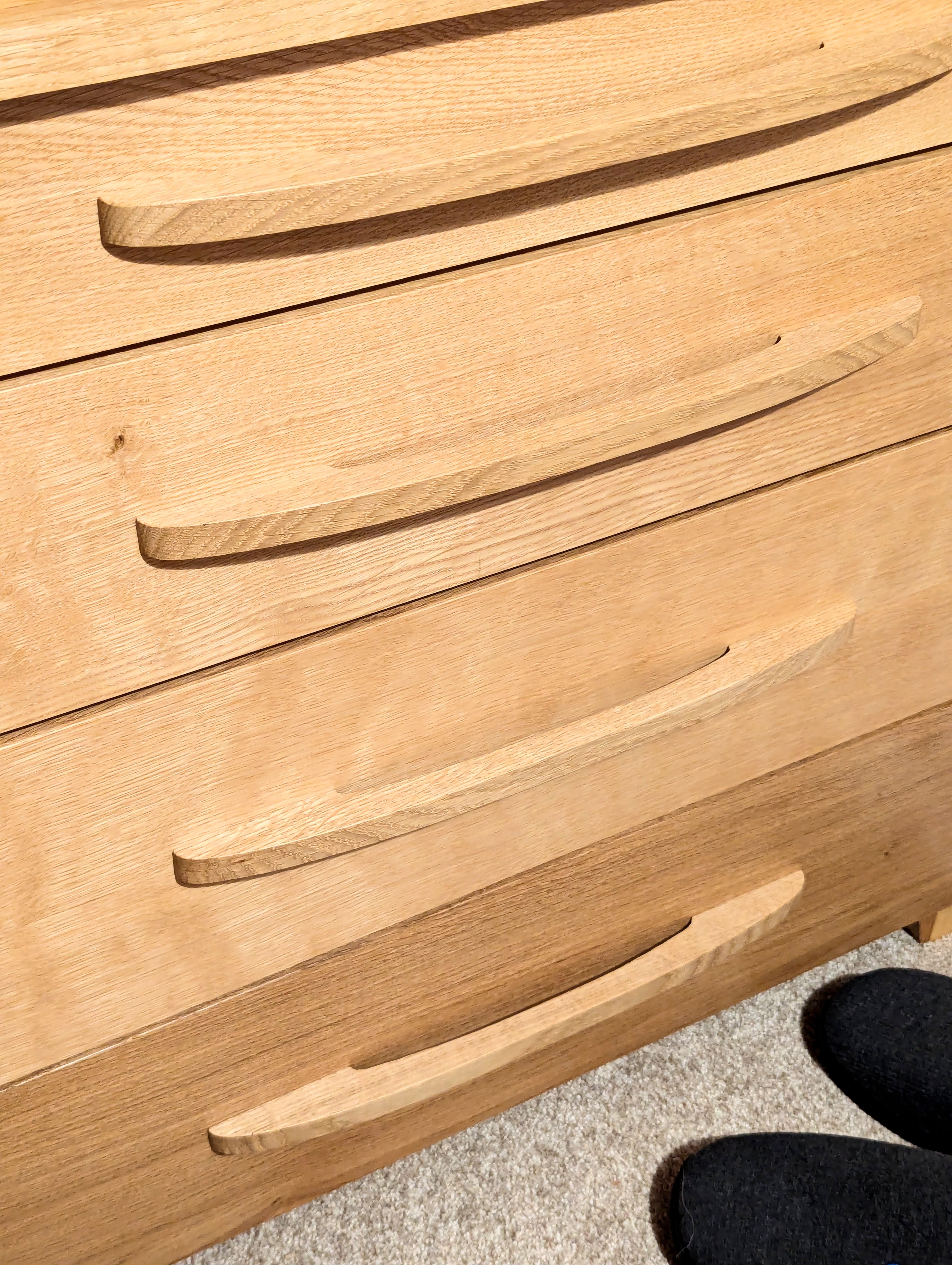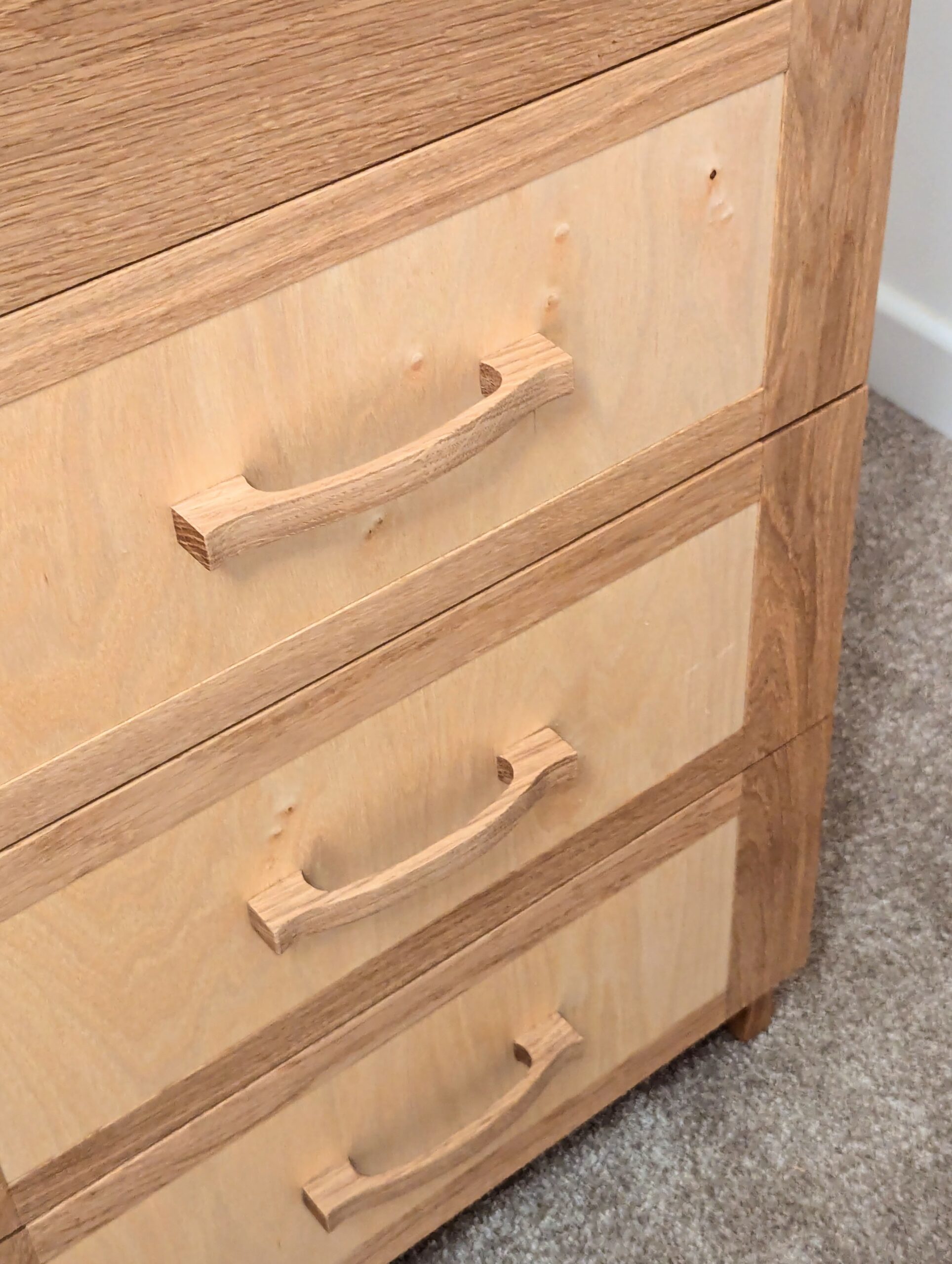 The large wardrobe took these long handles well, and I liked them very much. Again, easy to make and distinctive without flamboyance. I used a slightly different but complementary style on the chest of drawers and that went well.