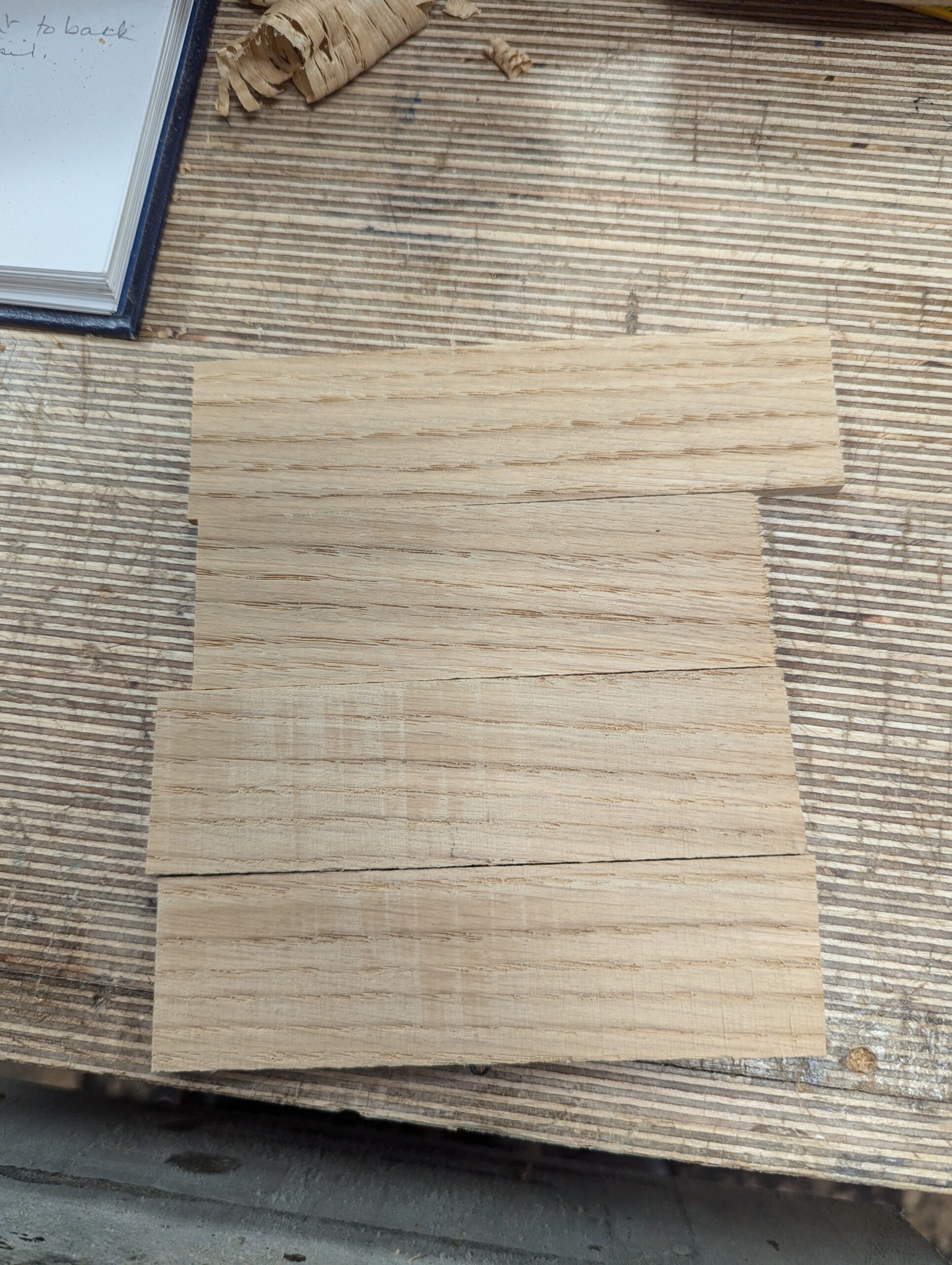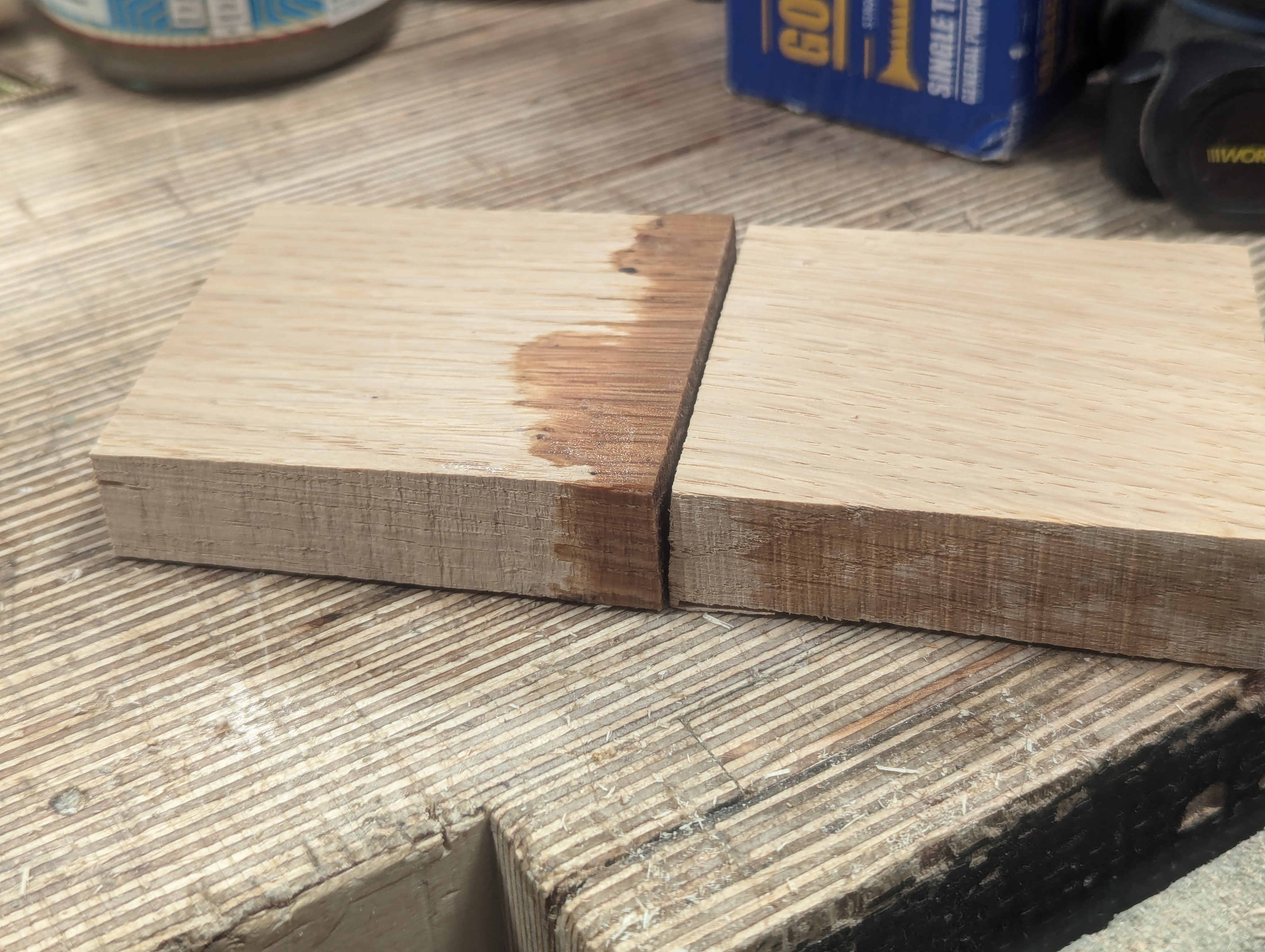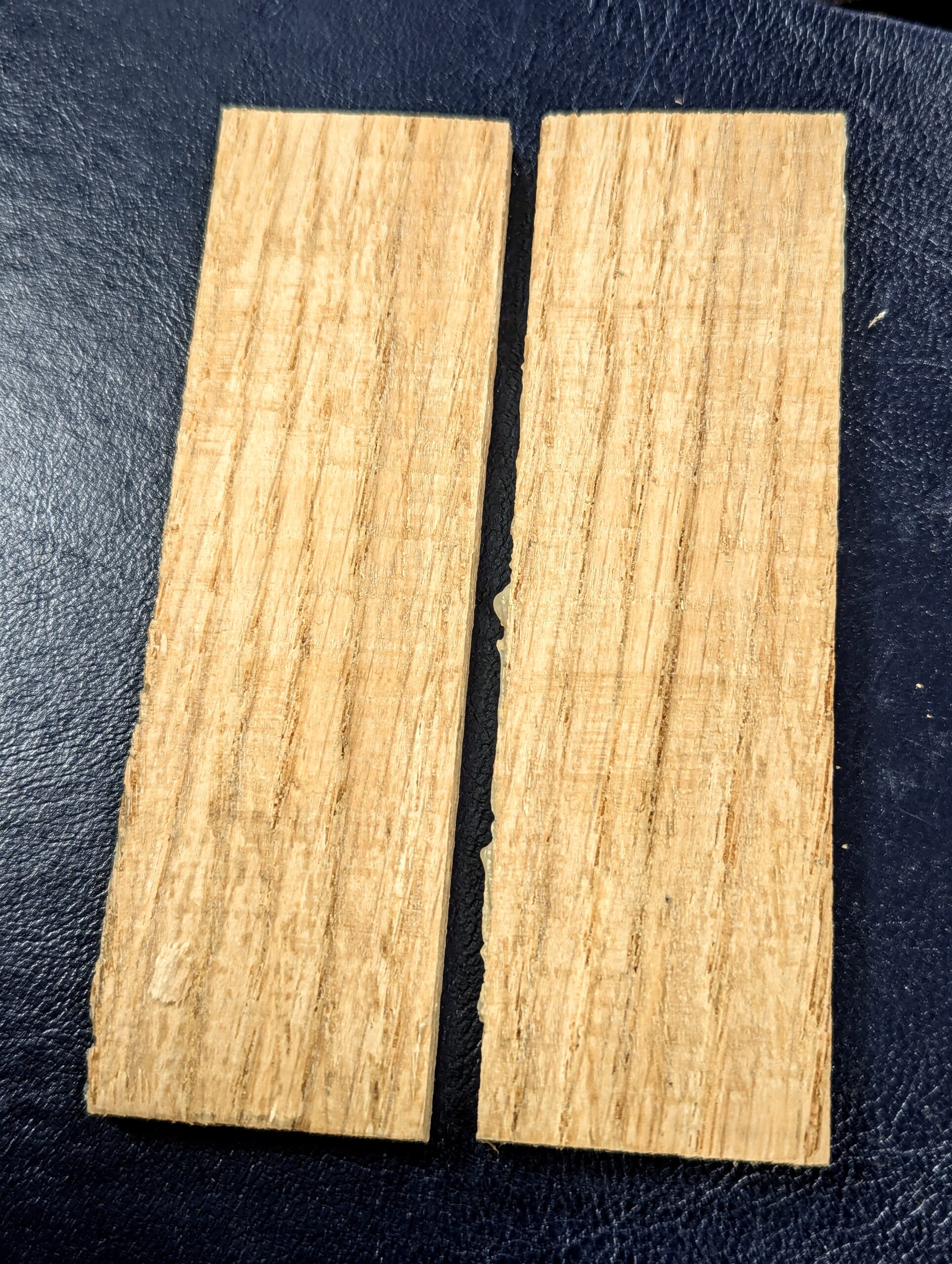 Taking a closer look at the oak examples above surely showed me in this particular case that the wood was considerably stronger than the glue in that the two examples readily parted quite cleanly, except in the smoothed pieces where some wood did split for a small percentage area of the wood. But it was the rougher surface that held the better in my testing. There wasn't a lot of difference, but it was enough for me to continue the way I glue up, using the rougher surfaces but not dead rough and uneven ones. But who would listen to Paul Sellers in his backwater of real life making in his garage studio in Oxfordshire. Splitting the two examples apart with a 1" chisel, I found the rough-sawn surfaces were harder to separate than the planed smooth ones. And I must say this too, I have known more planed surfaces to separate along glue lines than less smoothed out versions. Taking a coarse sandpaper carefully along edge-jointed edges for a wider glue up of a top does seem to give more 'tooth' within the jointed area, but you need to be careful not to touch the outer corners and round them as this will show in the finished glue line. Also, remember to make sure you blow off or remove any sanded particles, as this can end up a barrier between the glue and the meeting surfaces. Observe that the glue remained on both surfaces, showing me that the glue was indeed weaker than the wood and when you consider that oak is one of the very easiest of woods to split along the grain, that might surprise you all the more.