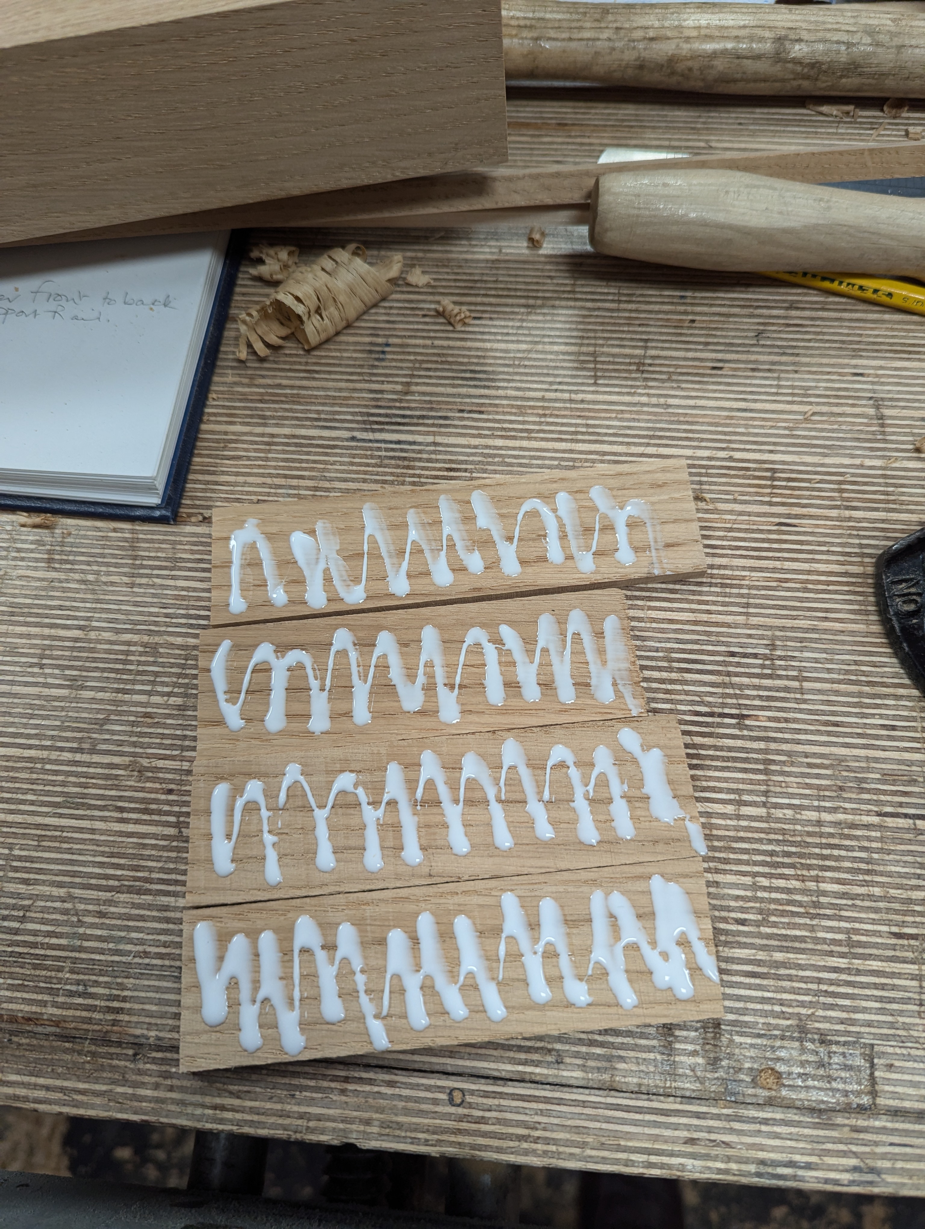 Polyvinyl alcohol (PVOH, PVA, or PVAl) is a colourless, odourless and water-soluble synthetic polymer. Hard to believe it, but it was first discovered over a hundred years ago in the early 1920s and is used for a massive range of applications, from laminating two or more panels of glass to create a safety glass to the packaging of all kinds of everyday products to keep them dry and free from contamination. It starts life in powder form, granules, or pellets to then be treated for a wide range of products including our much depended on, PVA glue. In many ways, it is not the glue that is so fascinating, though it's that too, but the effects of the water in the glue influencing the wood fibres and the stickability of the water-soluble plastic and its reaction in the surface and immediate subsurface fibres being glued.