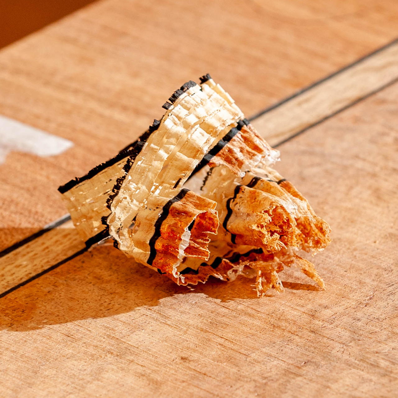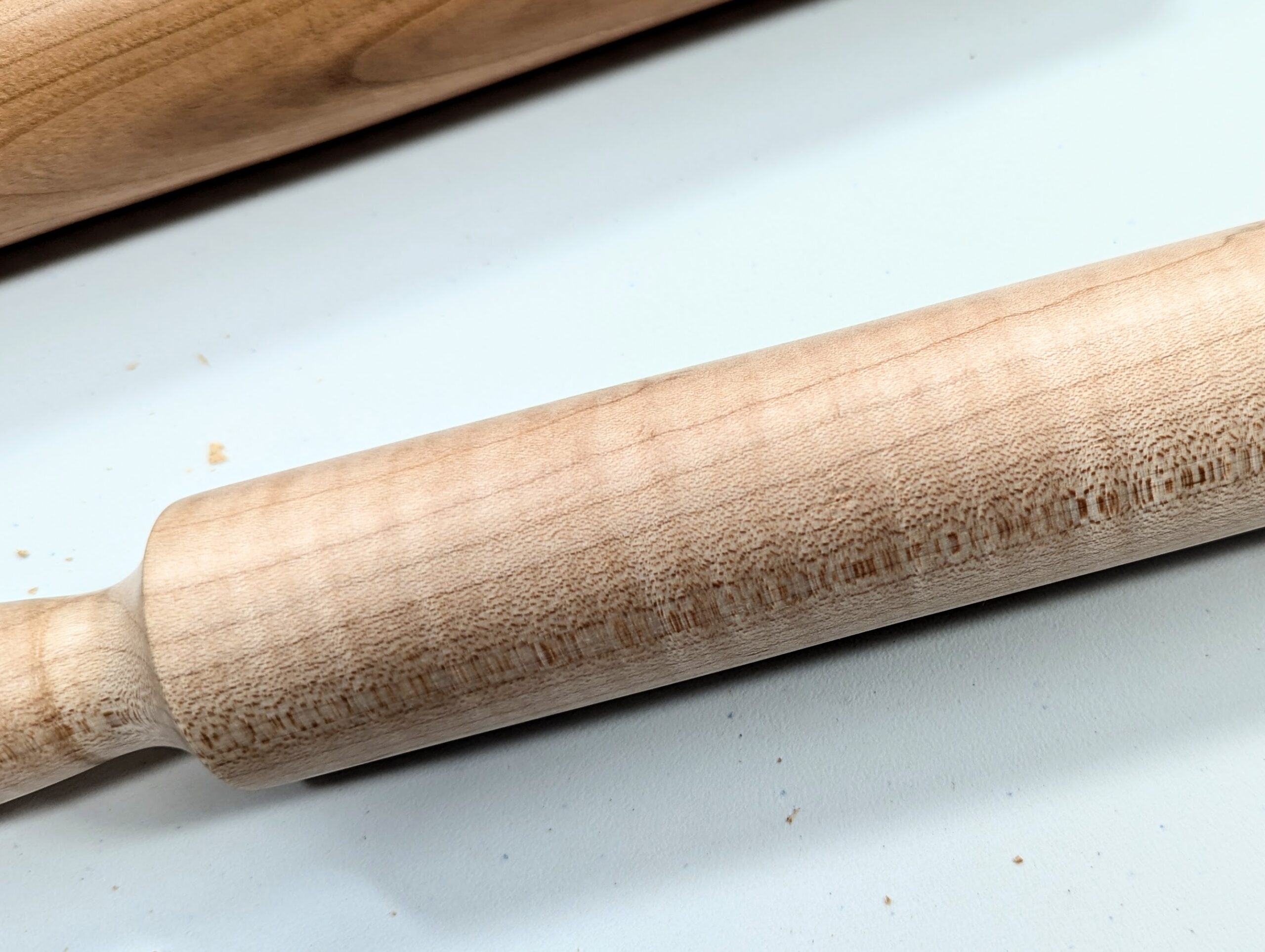 I used an offcut of curly maple to turn some bits and pieces from and, of course, more medullaries spoke out silently in volumes as my skew chisel skimmed off that last level in ribbons flying like sparkling fireworks to wrap around my wrists and hands.