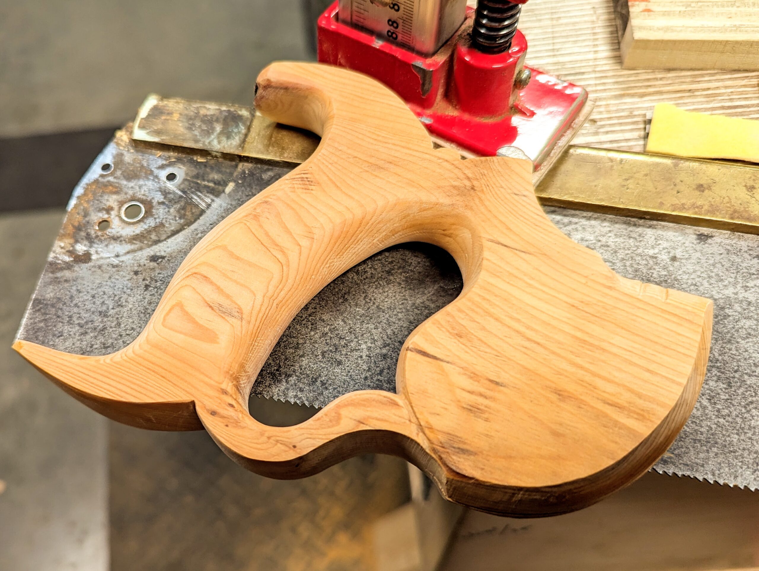 The Longhorn cattle, a hundred head, once settled in the shade and resting from perpetual grazing, but chew the cud as the stem draws up water, these silent influencers know none of the colours side by side in a finished box, the corner of an unseen dovetail and such like that. And here we are, we make new things from old trees and old planks of wood and marvel. Still, we mostly forget the backdrop grain pops off from. The place of its growing and the changes whether wrought in the growing of the tree. My small plank of yew, slowly diminishing in size, has made my saw handles, a plane or two and then the plane handles for three of my bench planes.