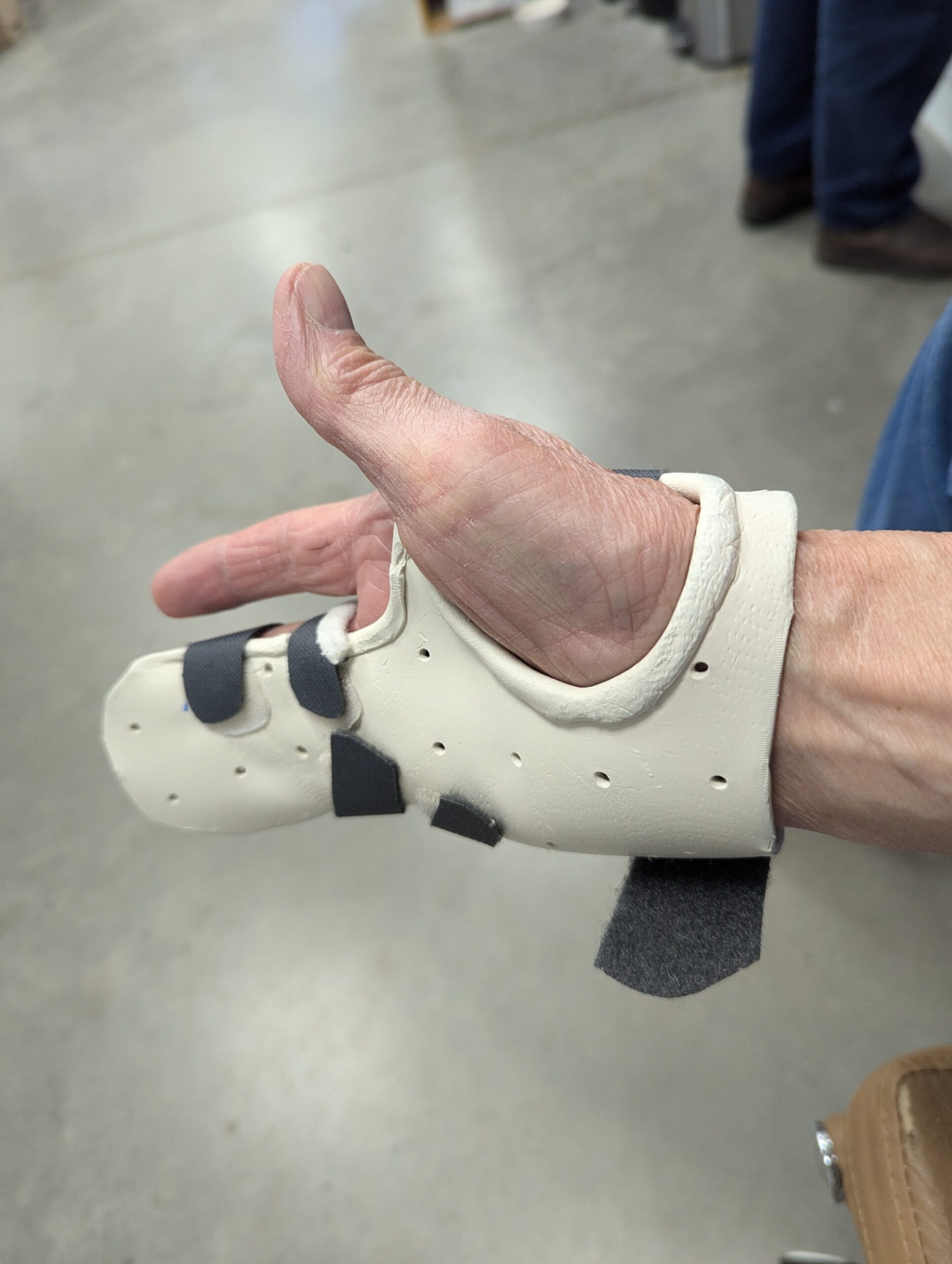 For six months, I wore rigid splints with Velcro straps to stop my hands from balling up into a fist. They woke me several times every night for six months, which showed me that they were both needed and were working. After four months, the waking lessened and at six months I slept peacefully with them on. I wore them this week for two nights, and I never woke in the eight hours I normally sleep for.