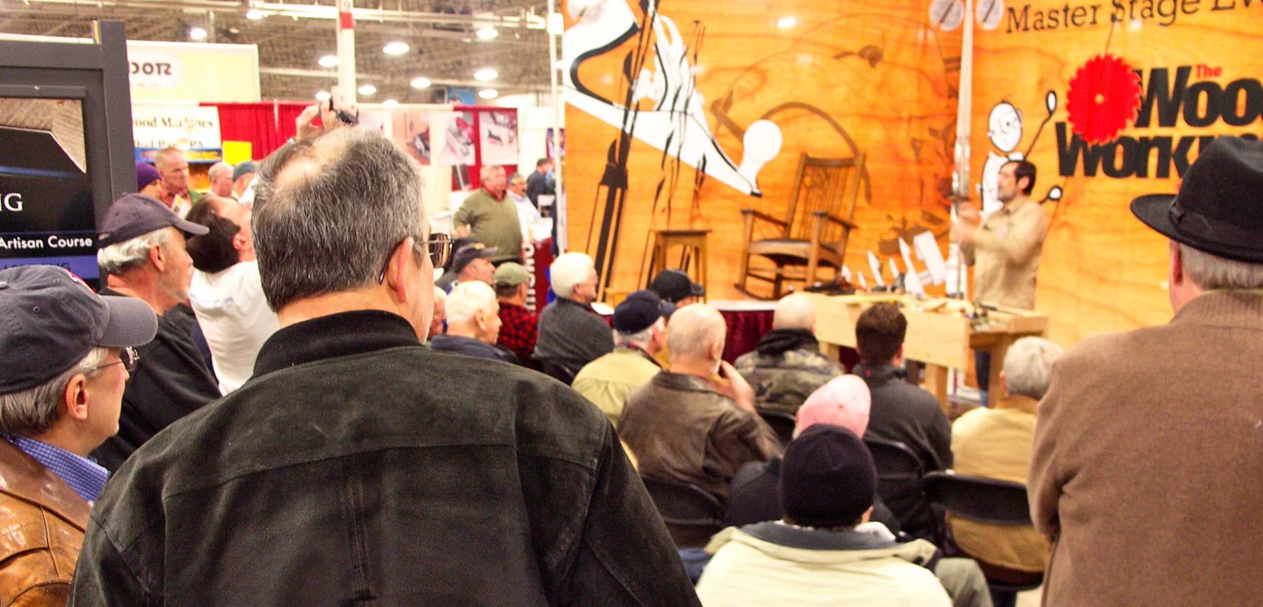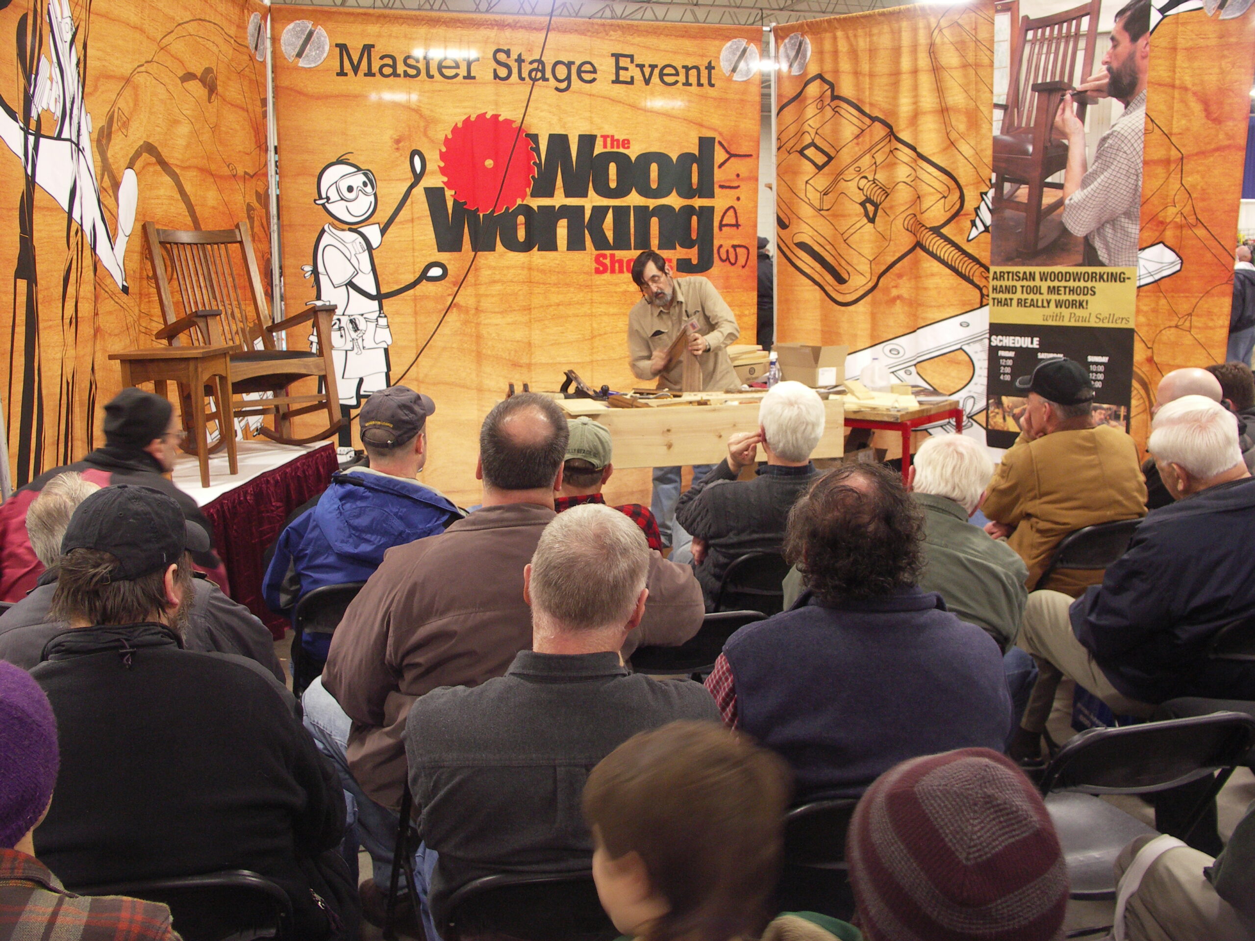 Here, you had what appeared to be an English woodworker, an unknown newby-kid on the block, yes, but more than that, a fish out of water demonstrating hand tool woodworking at shows dedicated wholly to machines. These shows showcased fifty machine types alongside machine-only methods and machine support equipment, dominant distributors like Woodcraft, Woodcraft Supplies, Rockler Inc and such. There I am settled or nestled in a 10-foot square booth, miniscule compared to the 70-foot by 70-foot set-ups on every side sporting massive banners spouting every big name you care to name. Think DeWalt, Milwaukie, Bosch, Delta and a hundred others and little ol' Paul Sellers showing how common hand tools really worked and working from a five-foot, homemade workbench. What was I selling? Well, most of the time in most of the shows, a total nothing. In those days, I, me, sold a great big nothing: I simply demonstrated my craft. There was no woodworking school and no hand-made furniture selling. How different things are for me today. In that day, I simply wanted to address the loss of skilled woodworking, real woodworking, what I later identified more accurately as lifestyle woodworking