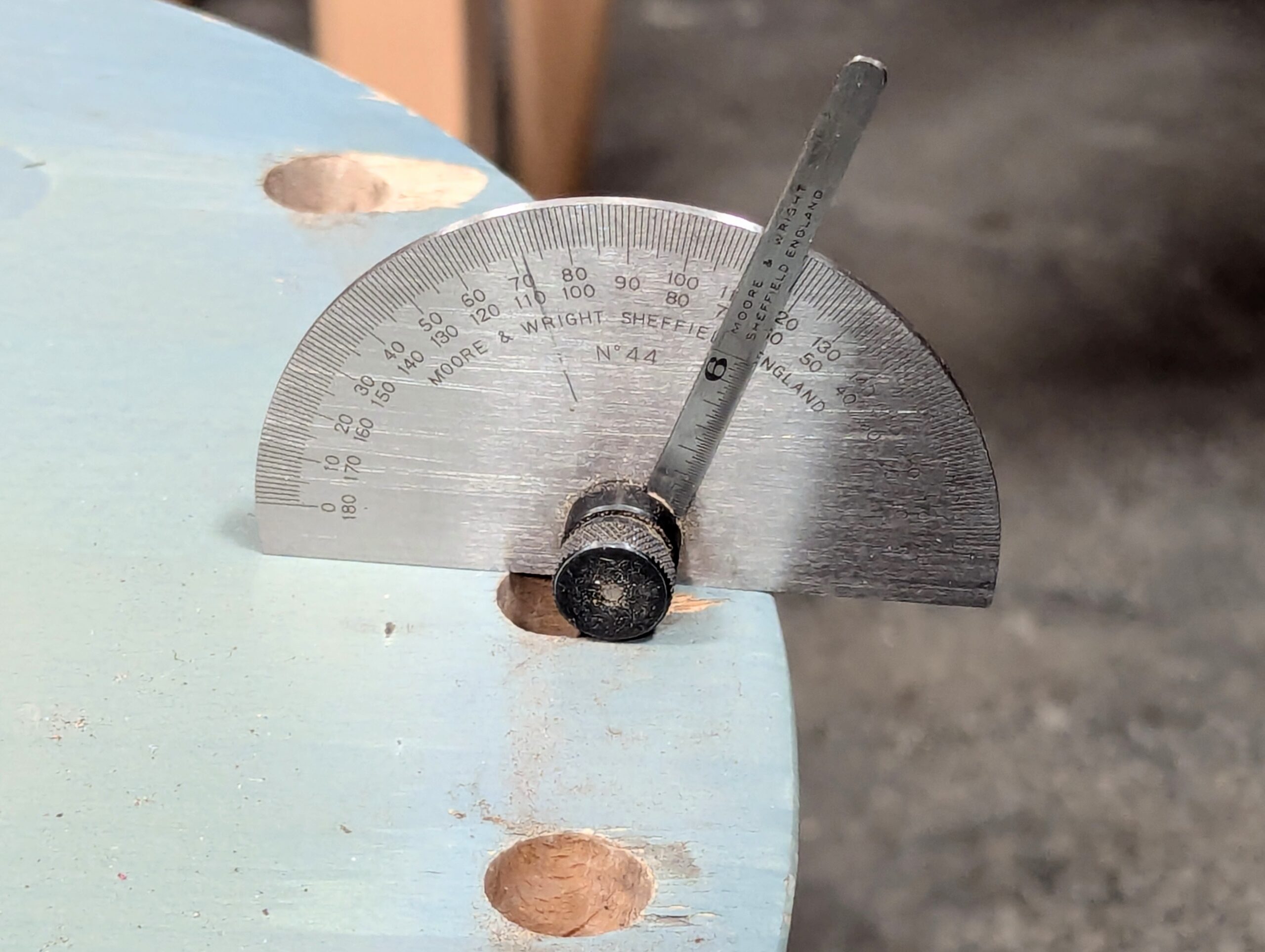 Before installing the spindles back in, I made sure I got accurate readings for the angle of the holes.