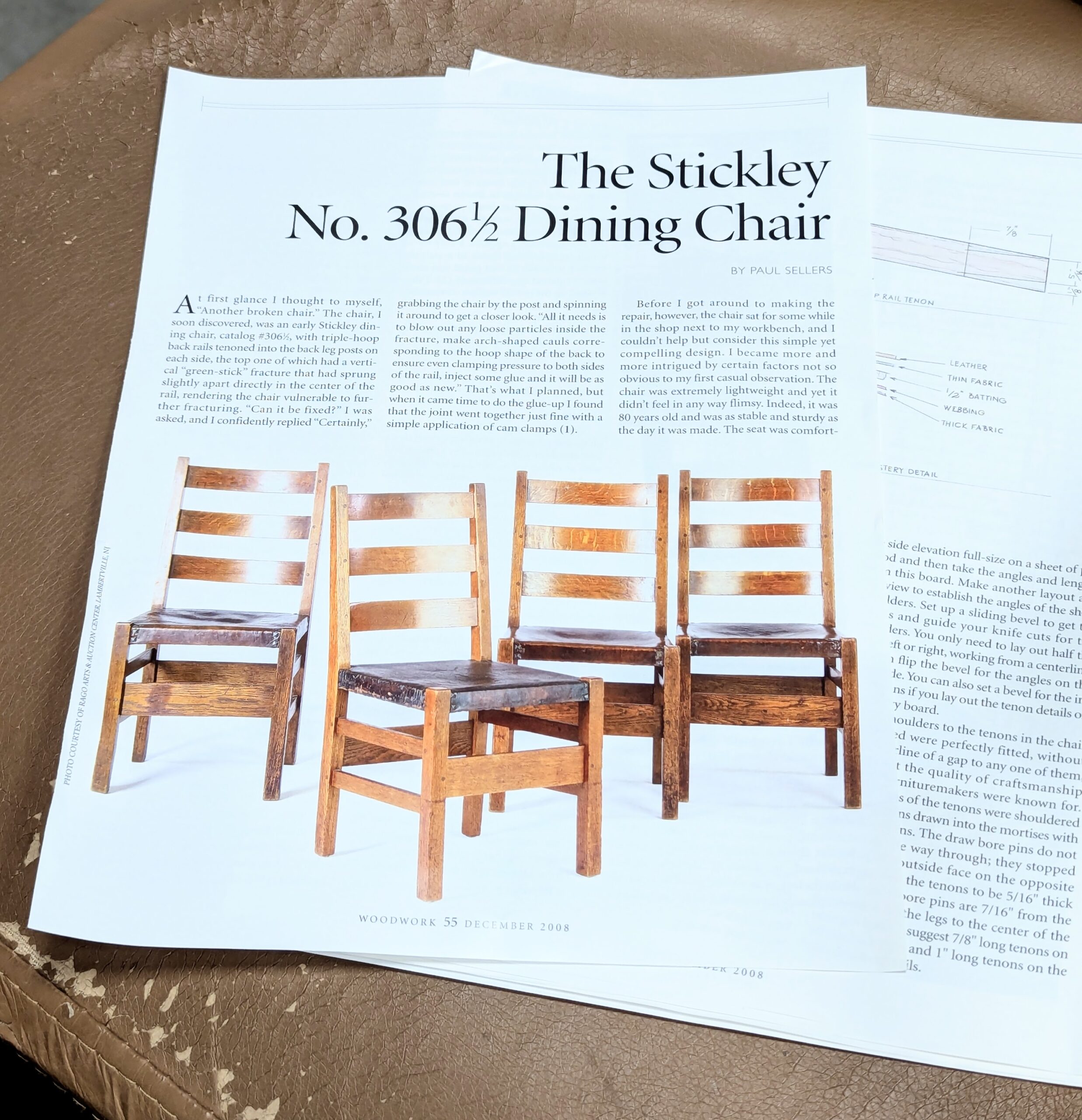 Chair repairs are highly informative. Some two decades ago I repaired a Stickley Dining Chair No 306 1/2. Taking my time, recording every detail for my journal, I ended up with some tremendous insights into the man's mind and his design and a few years after, ended up writing an article about the construction discoveries I made along the way.