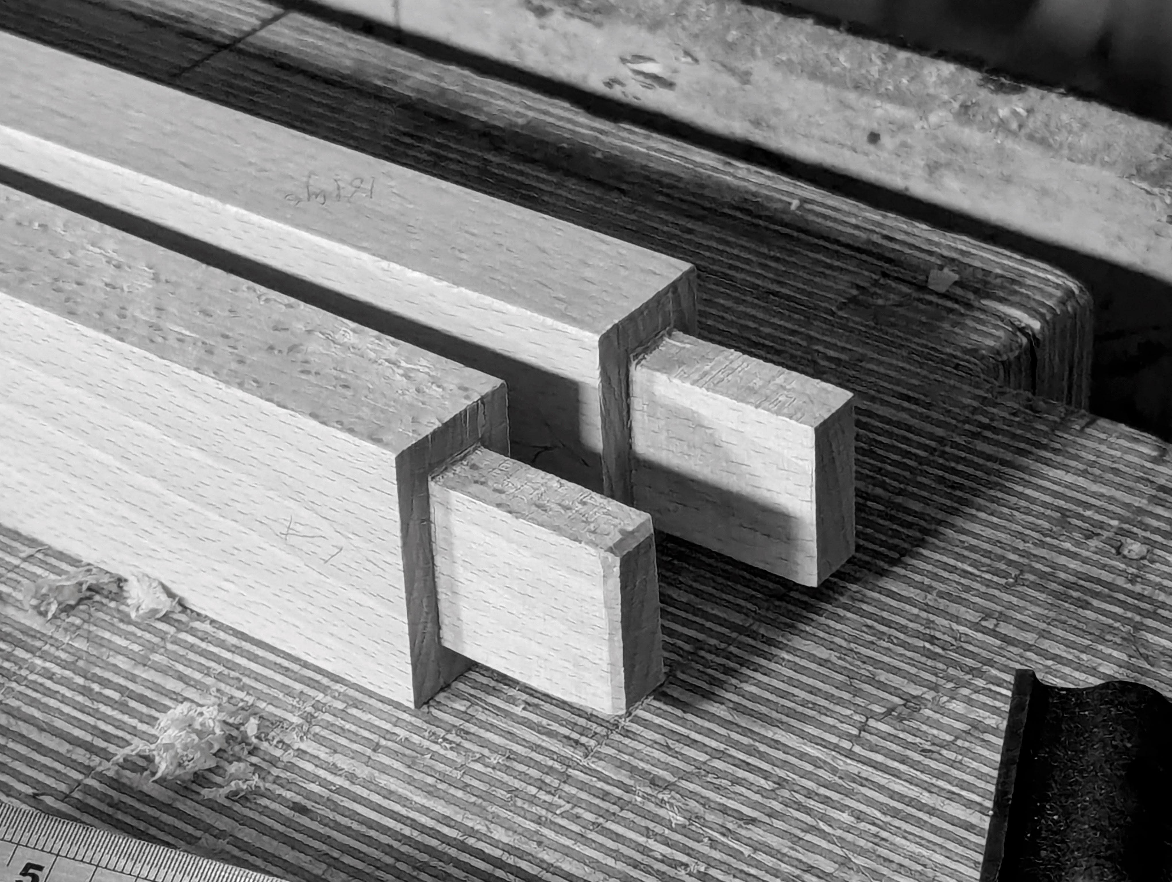 Watching that video, following gauge lines and knifewalls, fine pencil marks and thin lines, I pare-cut, split-cut, saw-cut and chop-cut the tenons to enhance my offering to an audience set on learning from what I do, yes, but also, moreso, it's more because that's what I do in my normal working. Variety of work types spices up my life. And guess what! I did it throughout my life making my living too, so to others in self-employed working, where money was the main and maybe only objective, I chose to make the work itself interesting beyond income because my work didn't revolve around money alone, the way I wanted to work became my lifestyle.