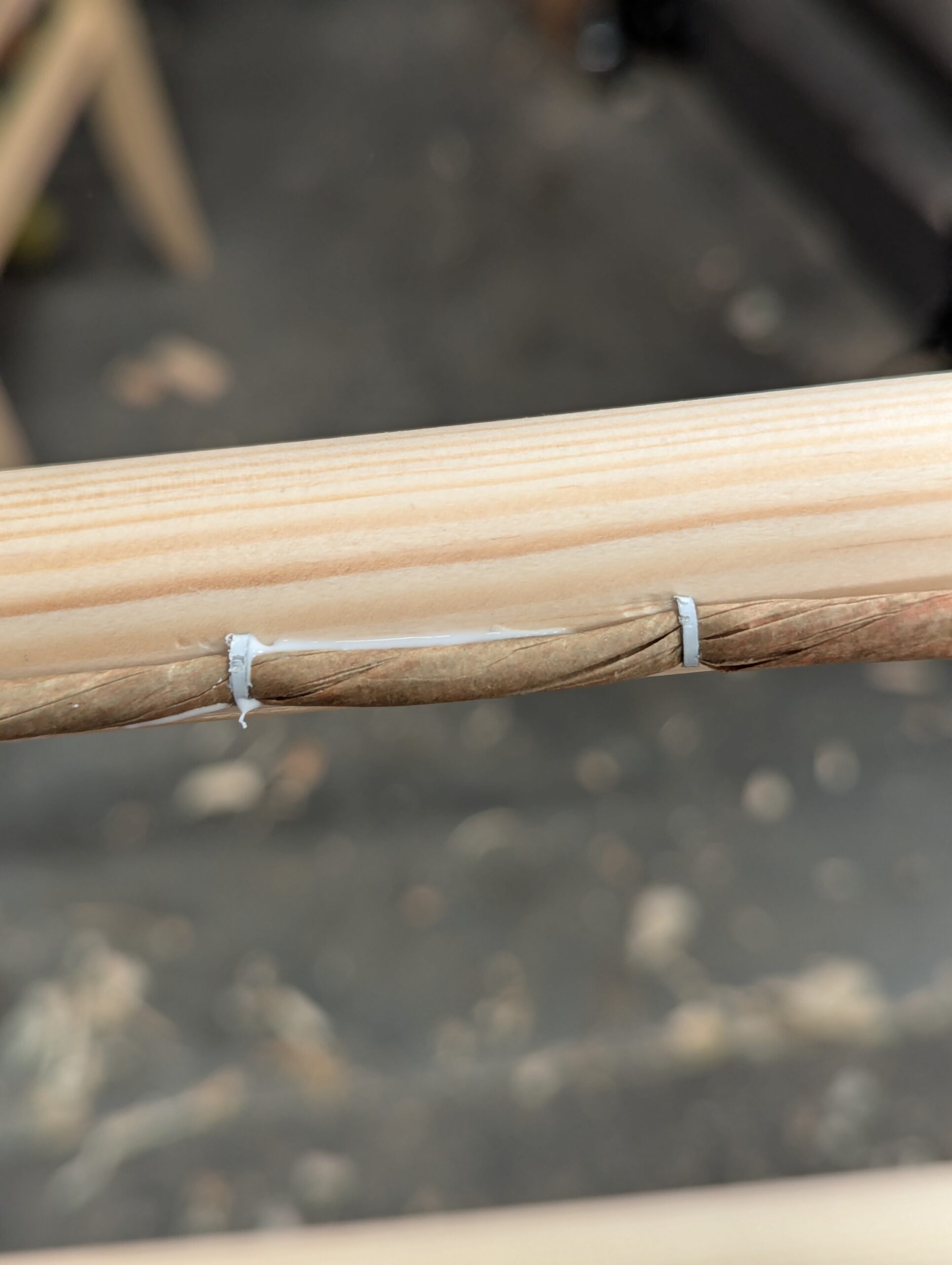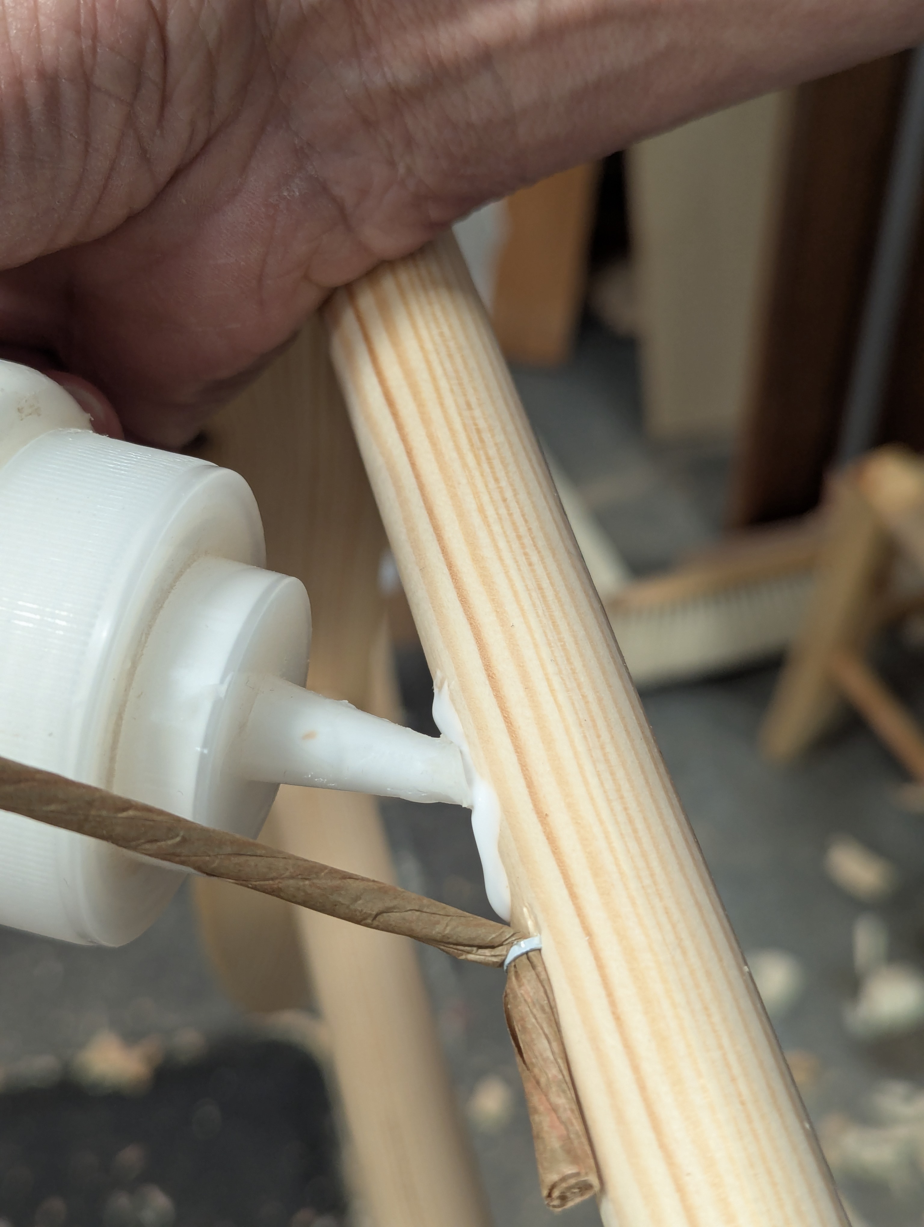 On round rails like this, I used a coping saw to saw a hollow at the end of the tapping stick. This helped to keep the stick centre on the rail as I worked around the rail.
