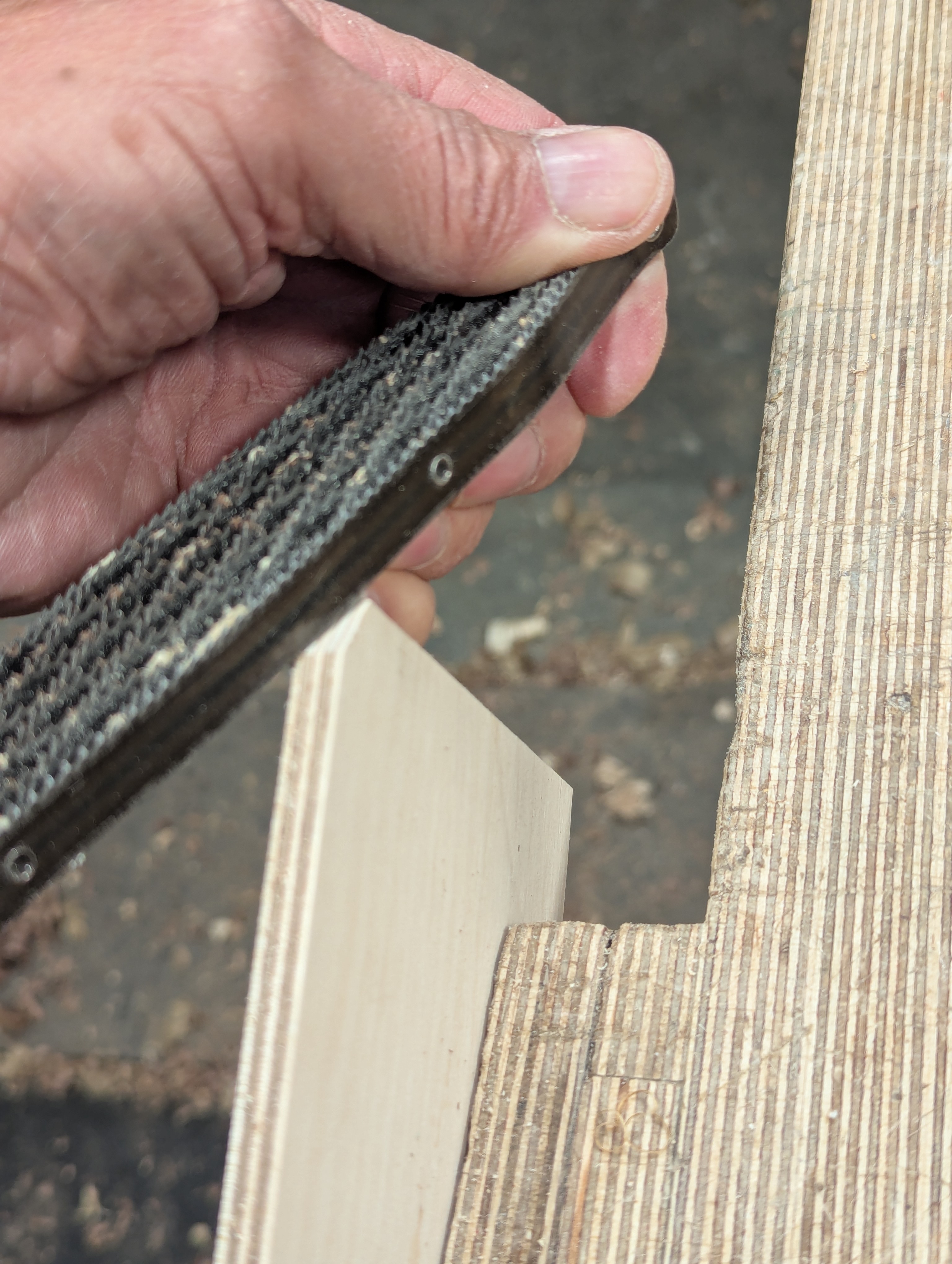 Use a rasp, a spokeshave or a file whenever you want to on plywood but feel after the best direction working as you work with the alternating ply directions. By this, I simply mean swivelling and skewing or turning the tool or the wood end for end and feeling out for the smoother cuts. By doing this, you will optimise the best outcome. This sensitivity increases the more you work with hand tools. You will develop tricks too.