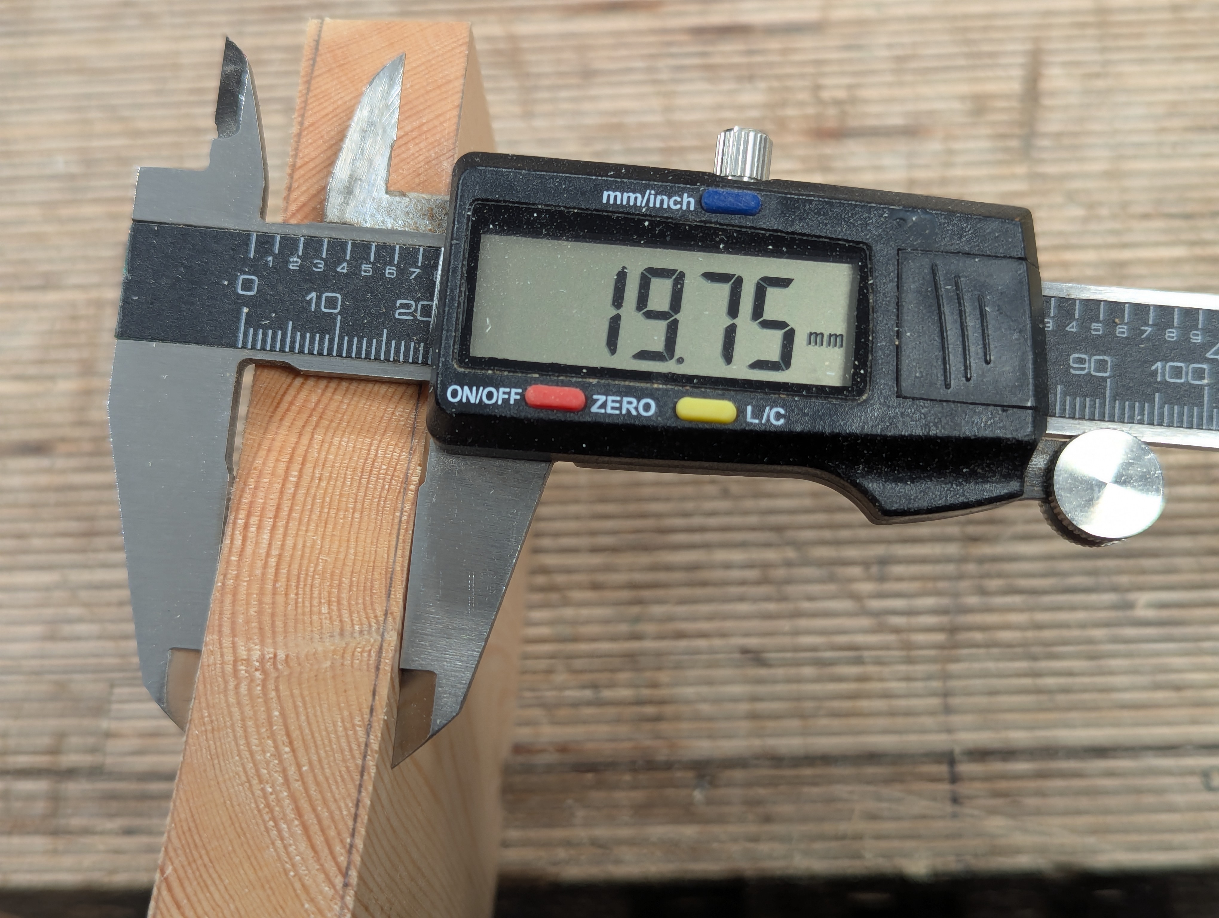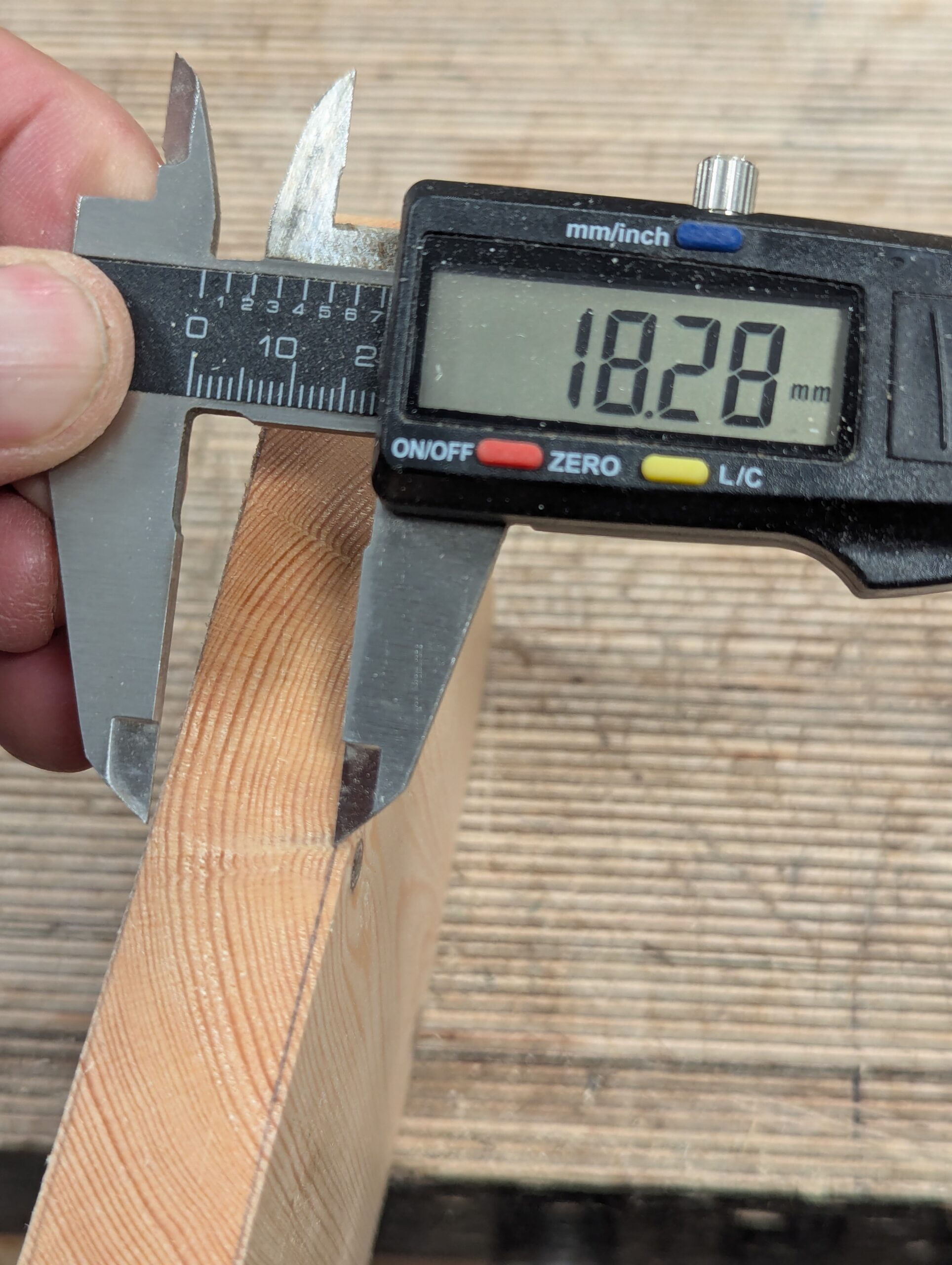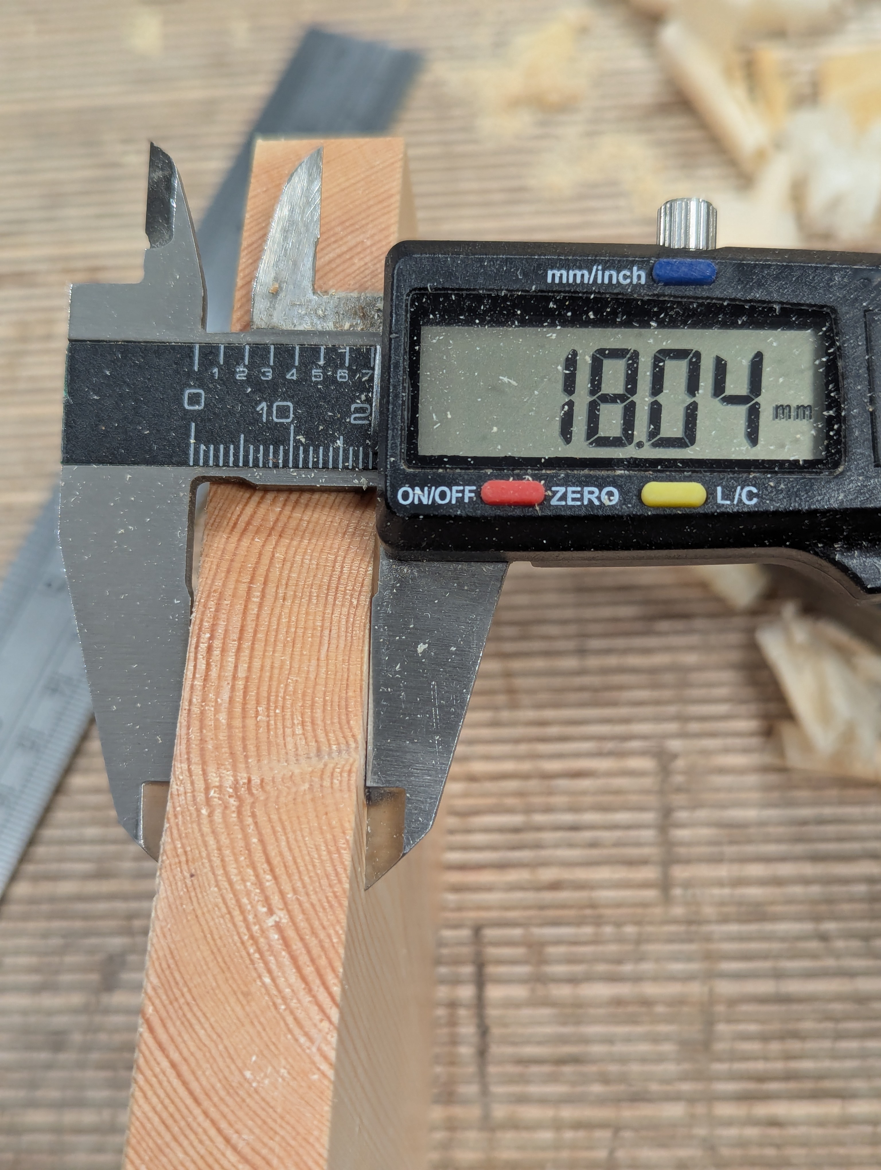 By the time the cup and twist are removed from the initial registration faces, the thickness is not too far from my final desired size. Let's discuss this first. In my case, here, the wood has a hollow of 1mm, about 1/32" give or take. That means, S4S, the opposite face will have a belly or camber on it of the same amount.