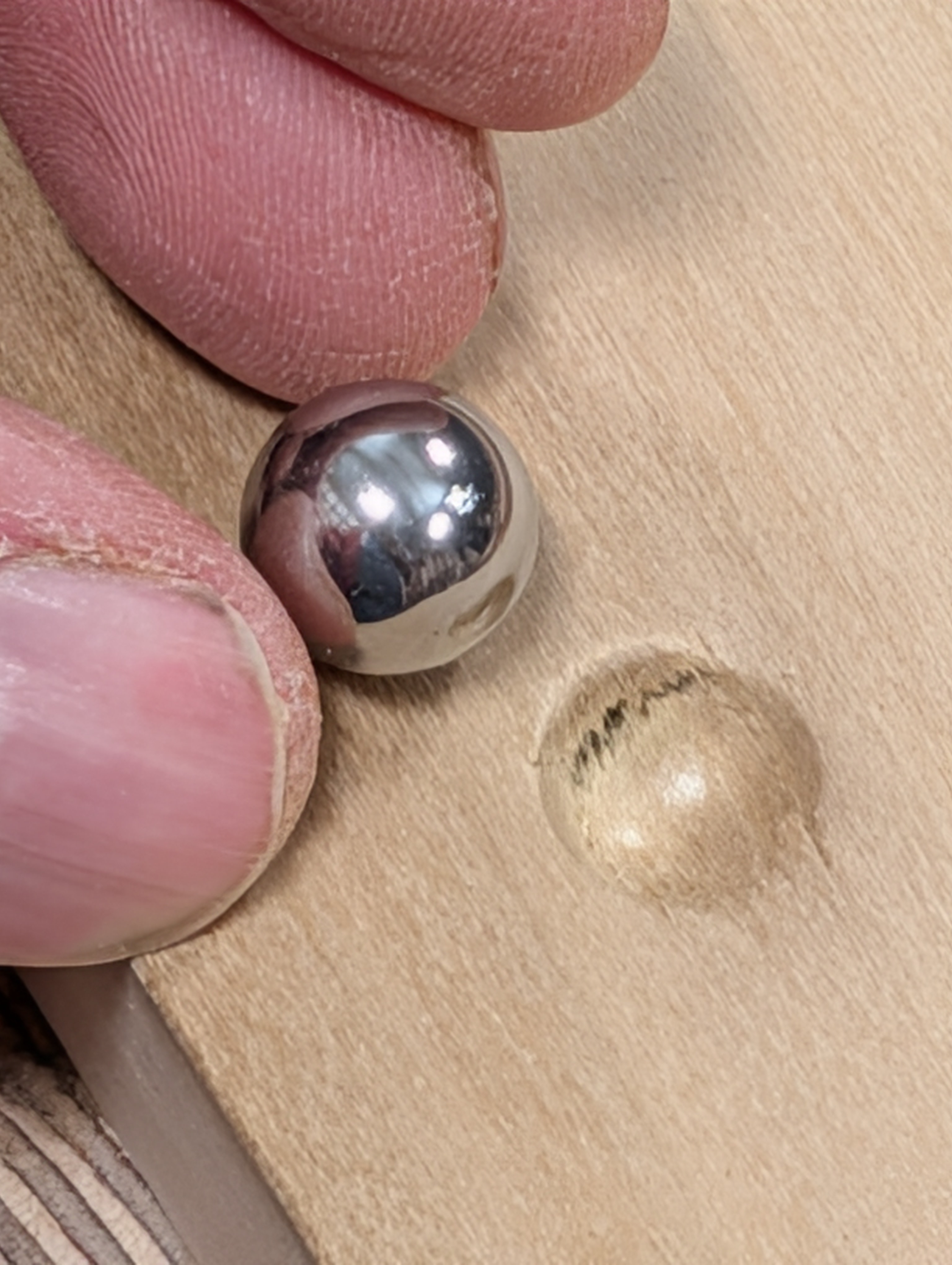 Of course, there is no better understanding to feed into your brain than trying things for yourself. I took a half-inch steel ball to sink into my experimental European oak and poplar scraps to see how the difference felt applying my muscle to the vice.