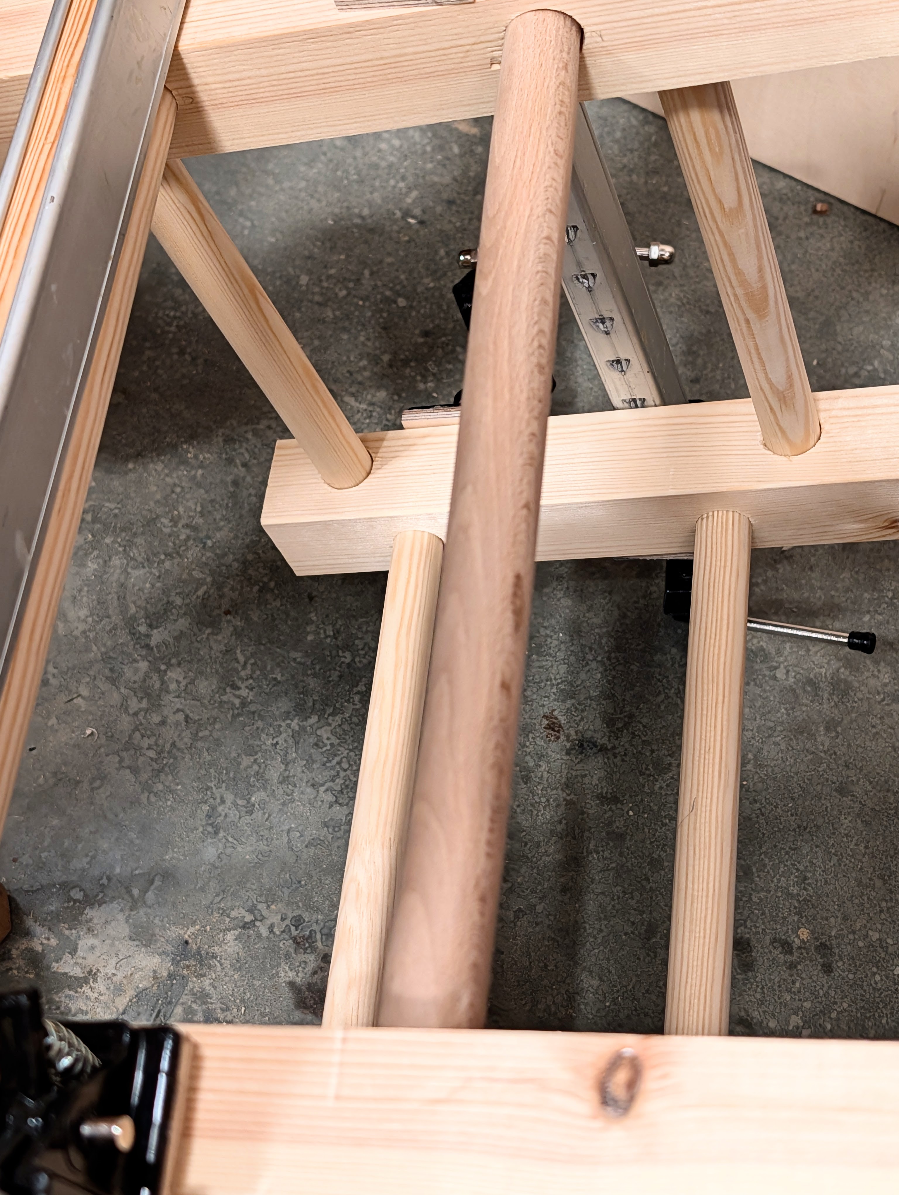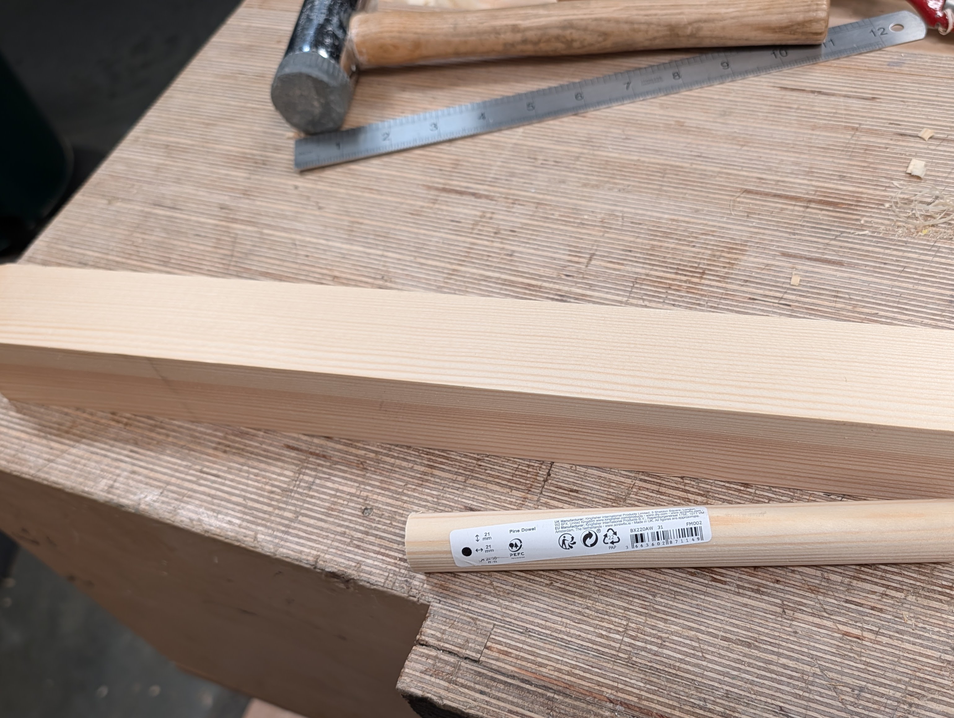 She took out her own Marples spokeshave, a birthday present from me when she was four, locked the stick of beech in the bench vise and started to reshape the square stock to round with her own spokeshave, her unrelenting determination and her expectation that she could indeed make a 22mm piece of square stock into a decent version of a dowel... which she did!
